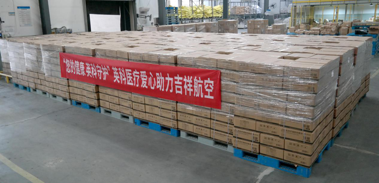 2020年12月22日,购宝钱包官网医疗科技股份有限公司(股票代码:300677)向吉祥航空捐赠的10万瓶购宝钱包官网免洗手凝胶抑菌液顺利从购宝钱包官网镇江生产基地发往上海。